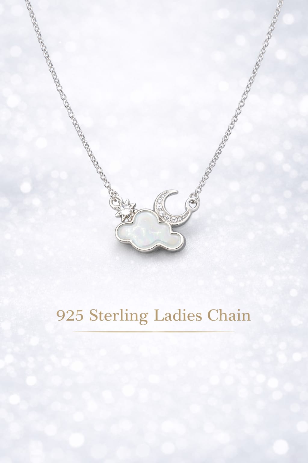 925 Sterling Silver Cloud Moon Pendant Necklace
